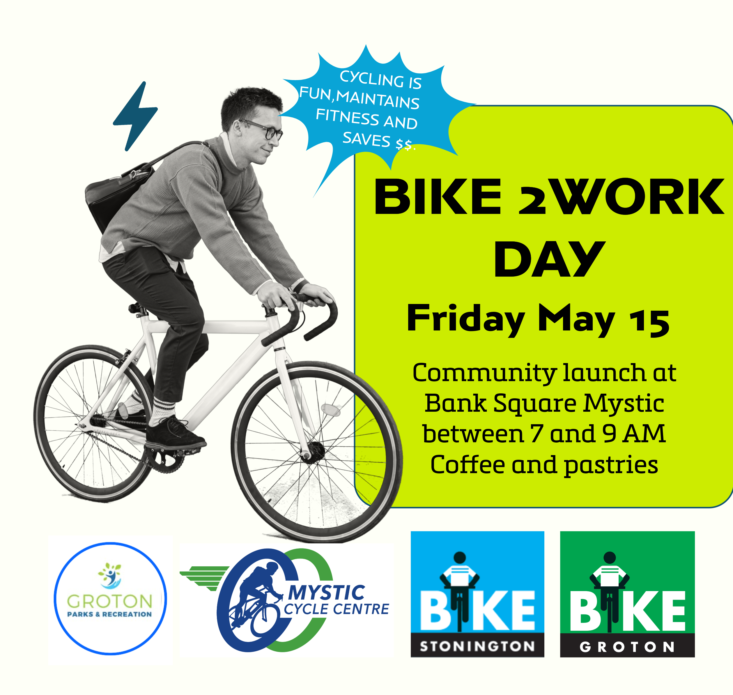 In partnership with Bike Groton and Bike Stonnington's bike to work initiative, we are offering local residents $30 weekday rentals on all E-Bikes now through May 14th, and $25 rentals on the day of the event May 15th.